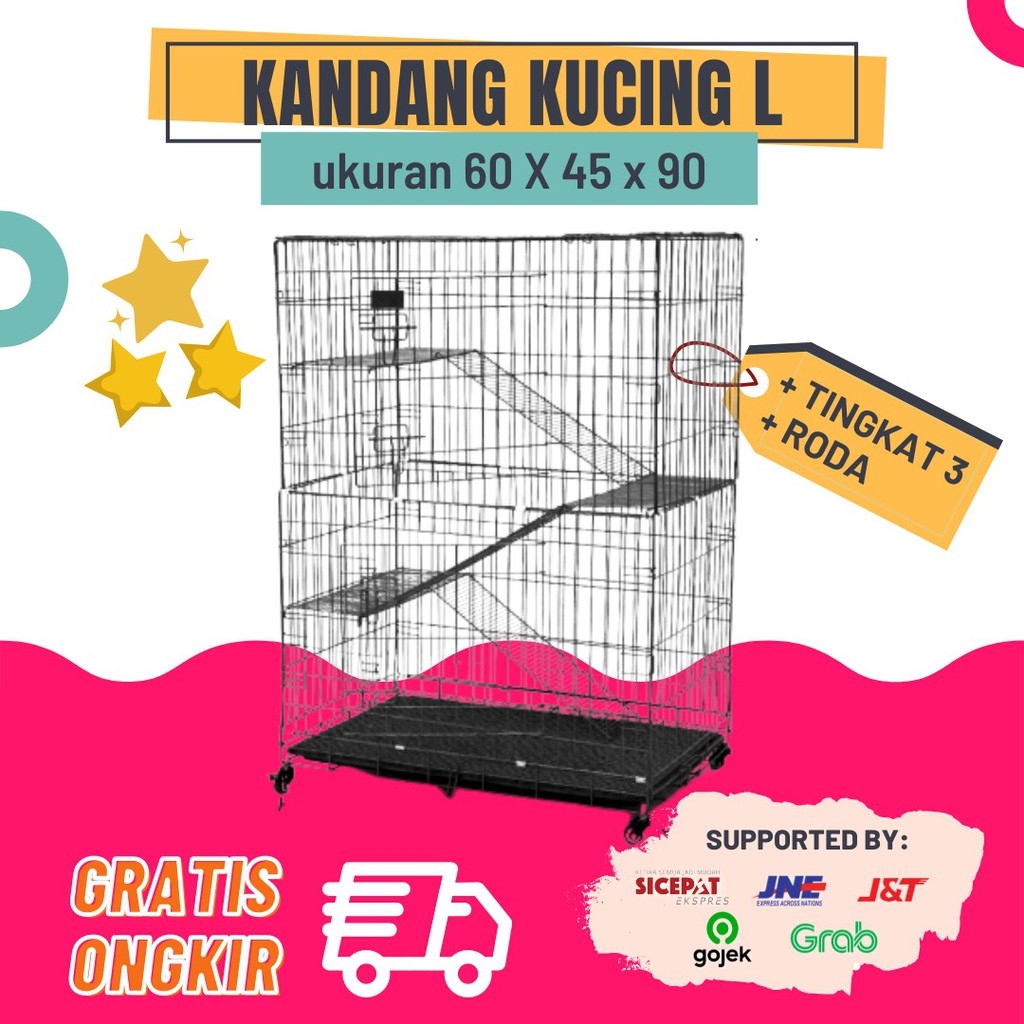 Alasan kenapa harus beli Kandang Kucing Tingkat 3 Size L Ukuran 90x60x45cm + Roda (Muat 3-4 Ekor Kucing) sekarang
